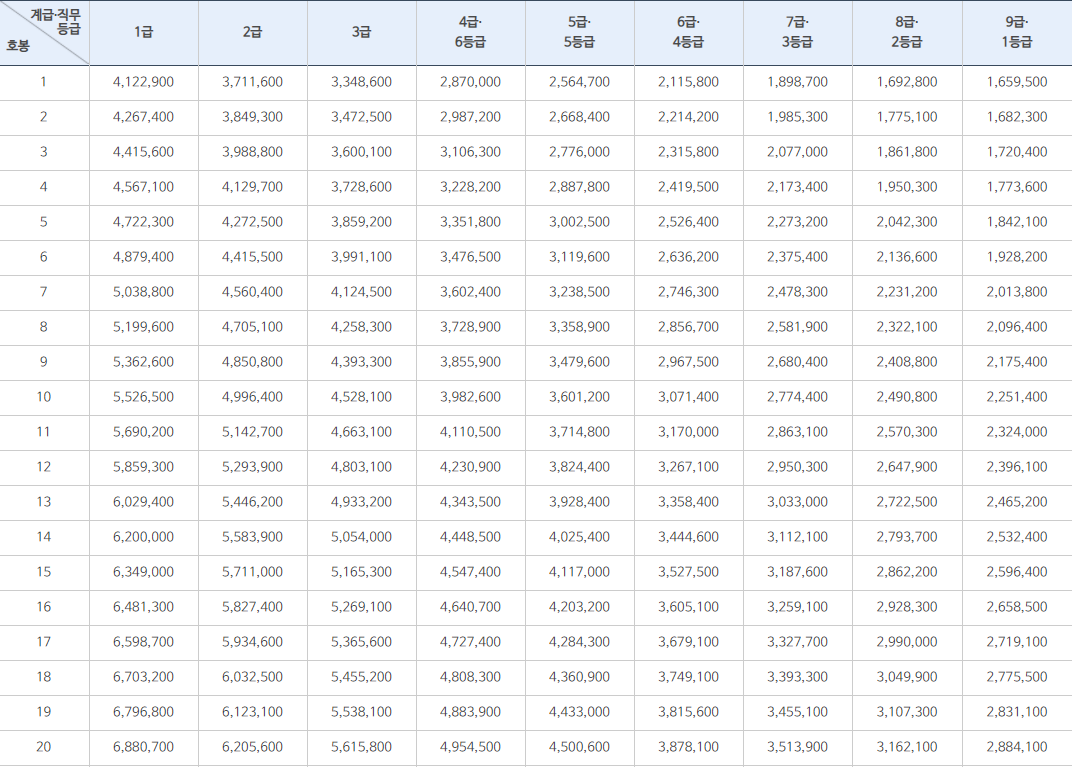 직종별 2021년 공무원 봉급표는, 인사혁신처 홈페이지 > 공무원 인사제도 > 성과/보수제도 > 공무원봉급표 메뉴 페이지에서 전부 확인하실 수 있으니 참고하시면 됩니다.