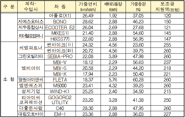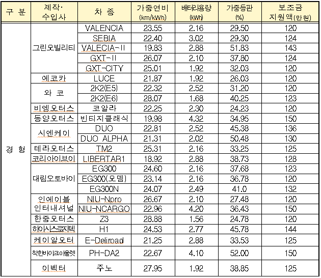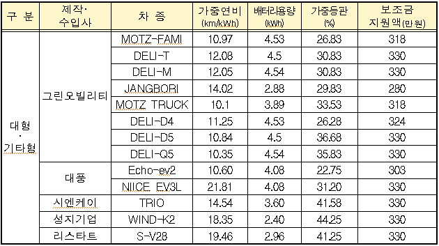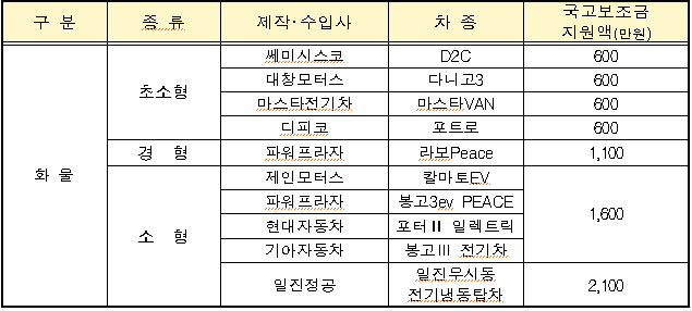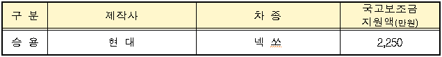 보조금 지원대상 차량 및 국고보조금
