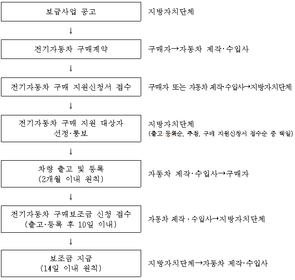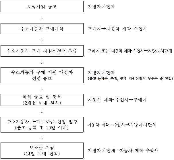 ※ 구매자는 차량구매대금과 보조금의 차액을 자동차 제작·수입사에 납부하고, 자동차 제작·수입사는 지방자치단체(국비보조금 + 지방비보조금)로부터 보조금 수령