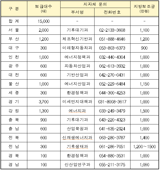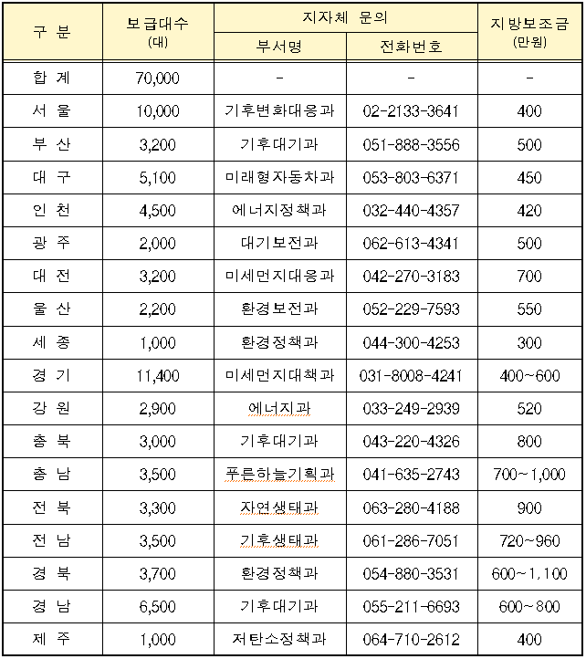 * 국비만으로 보급하는 5,000대는 한국자동차환경협회를 통해 별도 집행 예정