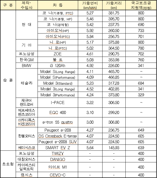 1. 전기자동차(승용 기준)