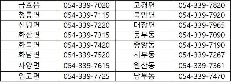 문의처 : 주소지 관할 읍면동 행정복지센터