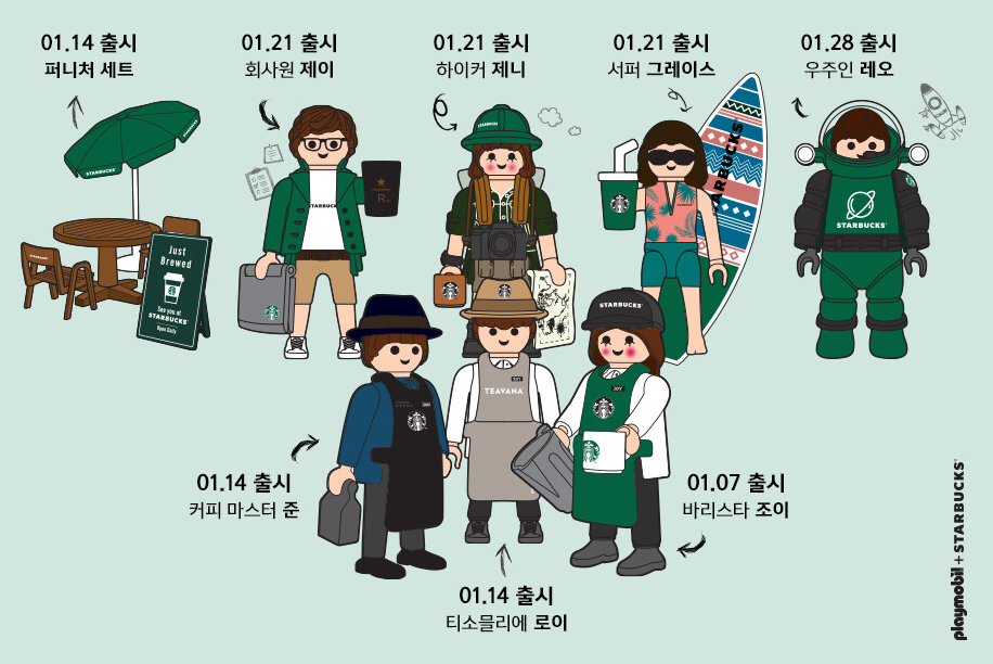 스타벅스에서 28일동안 차례로 출시되는 8가지 스타벅스 스페셜 에디션 플레이모빌 피규어가 핫 합니다.