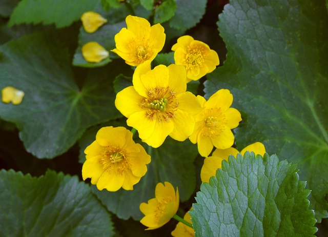 cowslip이라고도하는 습지 금잔화의 꽃은 전통적인 금잔화만큼 부풀지 않습니다. 대신, 작은 주황색-노란색 꽃은 조그마한 작은 히비스커스 꽃처럼 보이므로 강건한 히비스커스가 이 이른 봄에 피는 꽃과 함께 심기에 좋은 선택입니다.