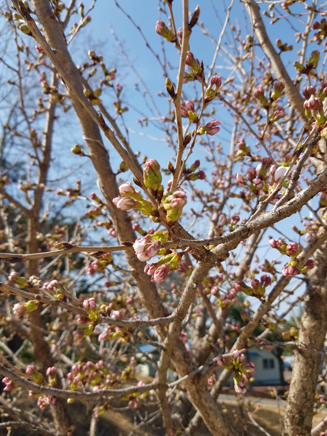 봄꽃 이미지 하면 벚꽃이 대표적이죠. 봄꽃 봄식물중에서도 단연 추천하는 봄꽃나무에 속할텐데, 꽃망울이 잔뜩 맺혀 있는걸 보니, 주말에 비소식이 있던데 아마도 다음주 정도면 활짝 필것으로 예상됩니다.