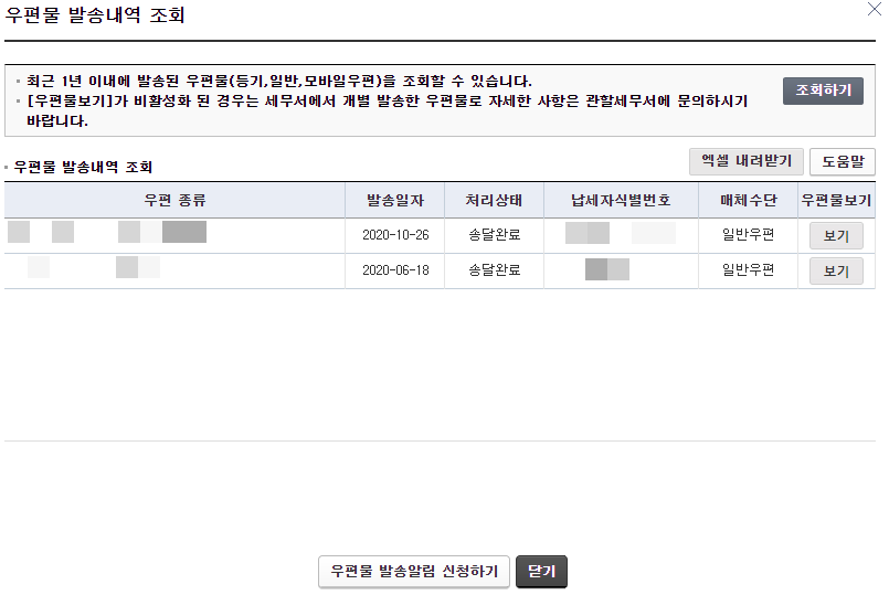 우편물 발송내역이 있다면 아래에 항목으로 나타나게 됩니다.