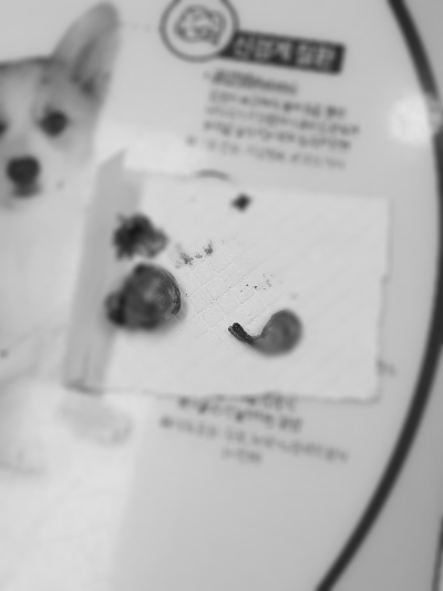 바로 수술을 통해 제거를 하였는데, 노령견이던 산이의 커진 고환을 제거를 한 모습이다. 흑백으로 처리한 사진을 보면 큰 부분이 바로 사타구니쪽에 혹처럼 크게 만져지던 딱딱하게 만져지던 고환부분인데 오른쪽 고환에 비하면 크기가 배로 커져 있는걸 볼 수 있다.
