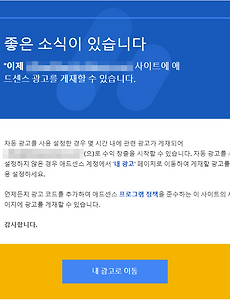 2019/08/251 구글애드센스사이트추가 완료(feat.7개월 걸림) 구글애드센스사이트추가 완료(feat.7개월 걸림) 정말 오랜시간 고대하였지만 번번히 실망을 거듭하고 있던 구글애드센스사이트추가 관련해서 오늘 드디어 승인완료 즉, 애드센스광고를 달 수 있다는 안내 메일을 받게 되었다. 메일의 첫 타이틀 내용을 보면, 좋은 소식이 있습니다!! ㅎㅎ 얼마나 고대하던 소식인지... 참고로, 해당 블로그의 경우 티스토리블로그 개설한지 장장 7개월이라는 엄청난 시간이 걸린셈이다. ㅠ.ㅠ 오늘 위 안내 메일을 받고서, 해당 블로그의 개설일(시작일)을 살펴보니, 블로그 시작일은 2019.01.28 이었다. 거의 7개월만에 간신히 승인된 케이스인데 그동안 더 짧은 시간으로 단축할수 있는 기회와 방법도 알고도 있었고 할수도 있었지만, 결과론적으론 나의 게으름이 크게 한몫하였기도 하고, .. 2019. 8. 25. 이전 1 다음